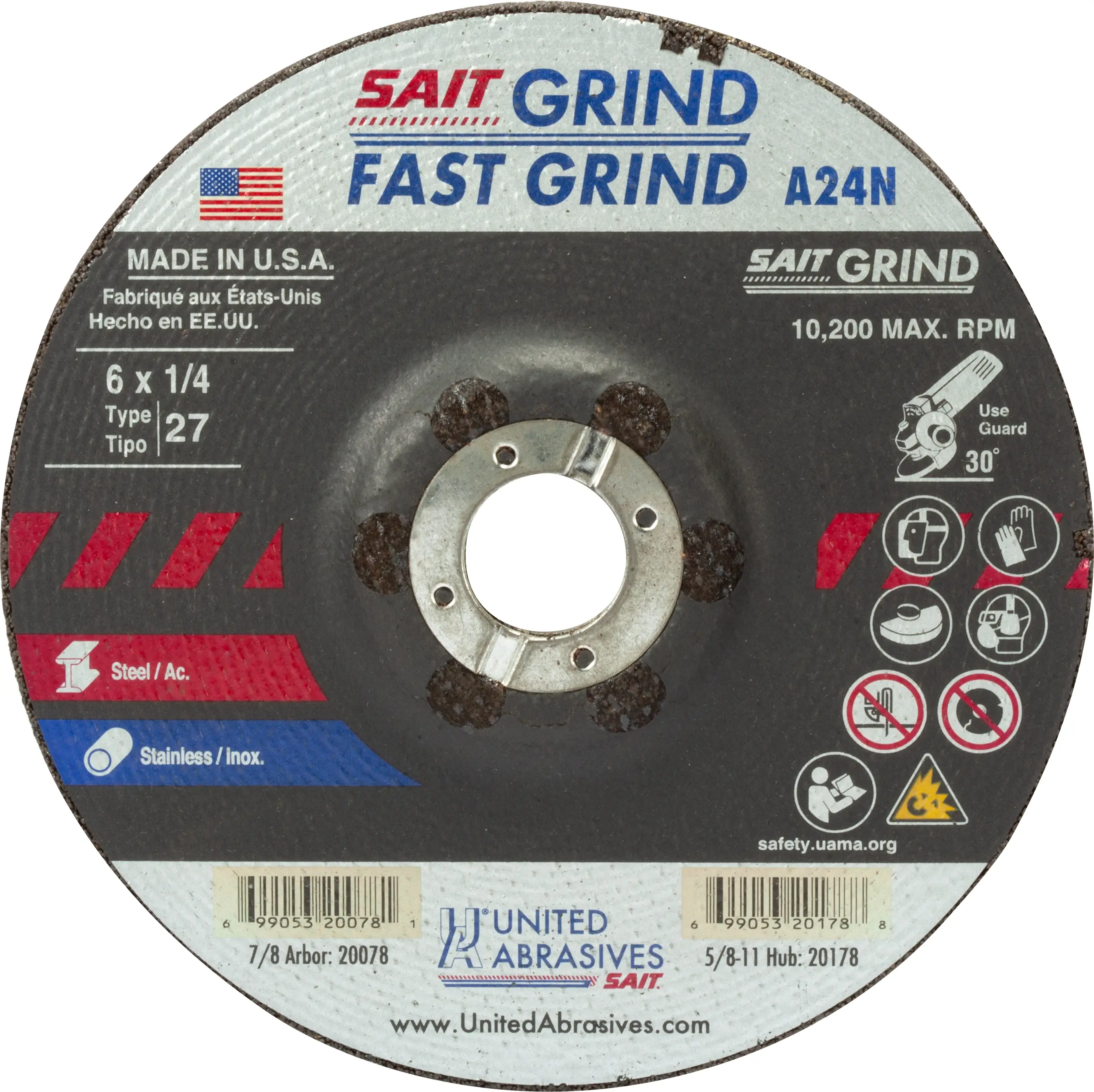 6″ x 1/4″ x 7/8″ Arbor – Fast Grinding – Depressed Center, 10,200 RPM #20078 – (25 per Box)